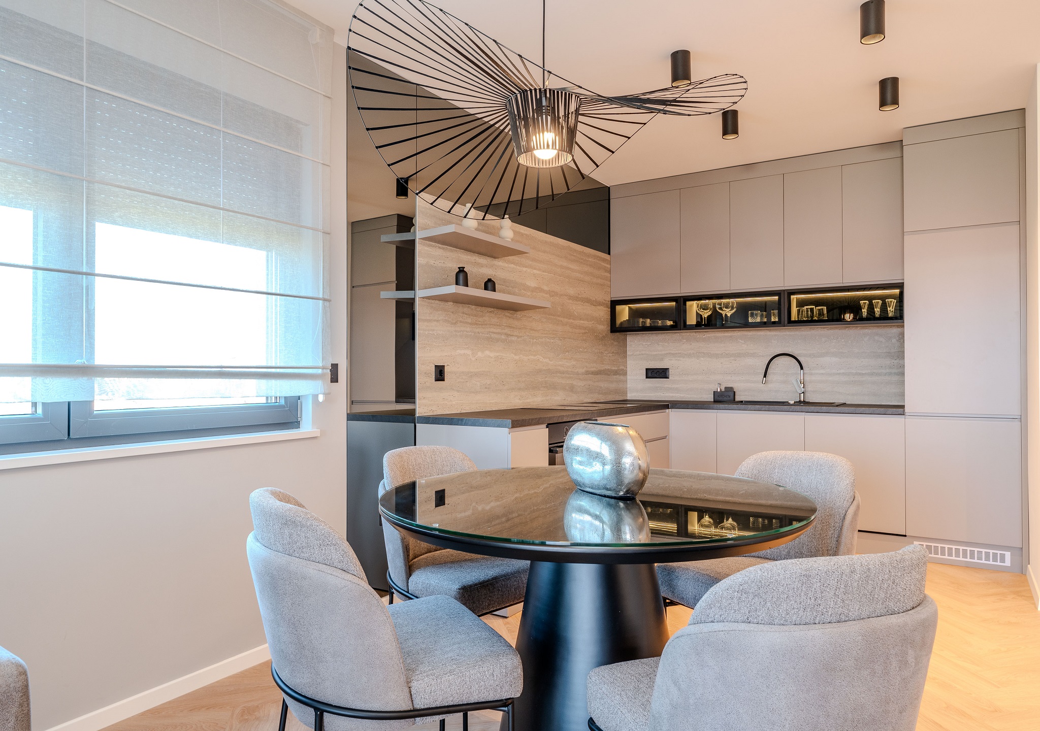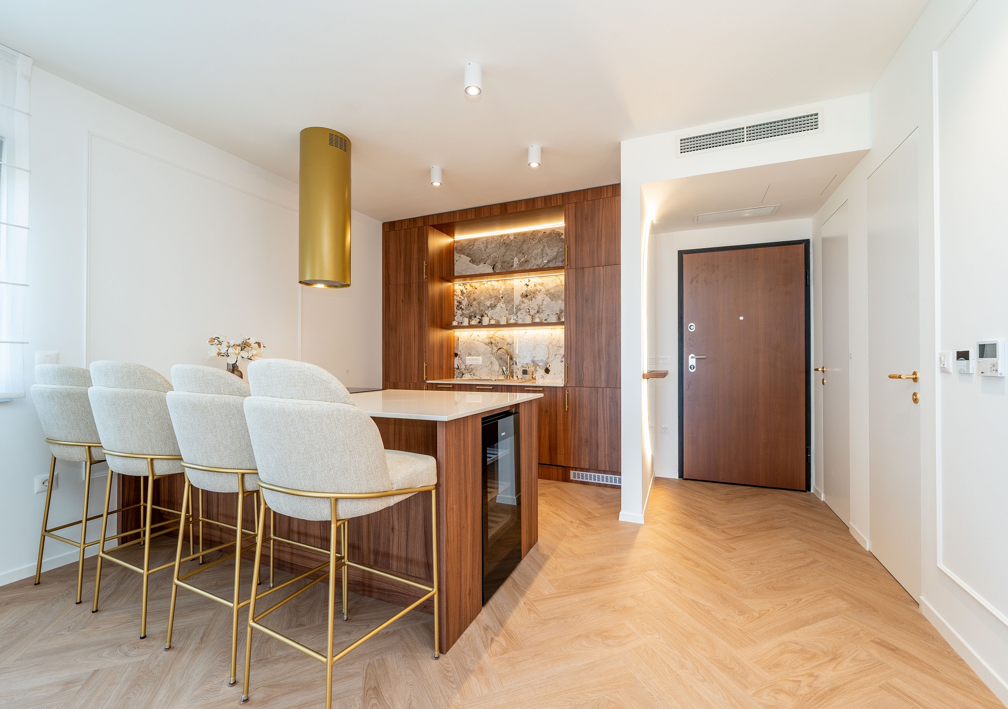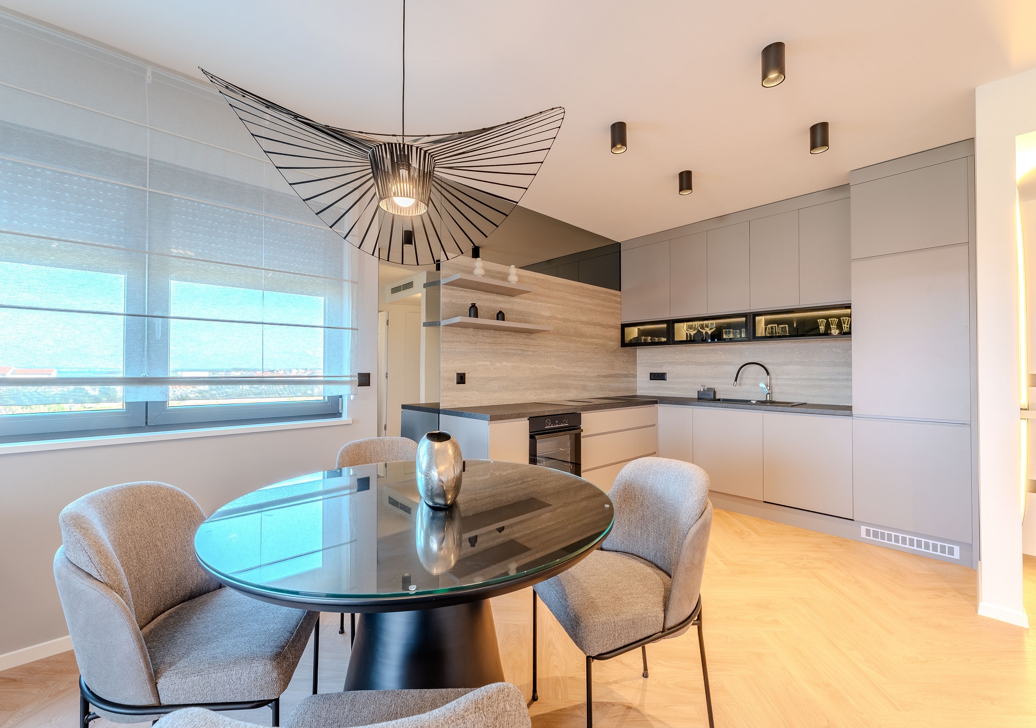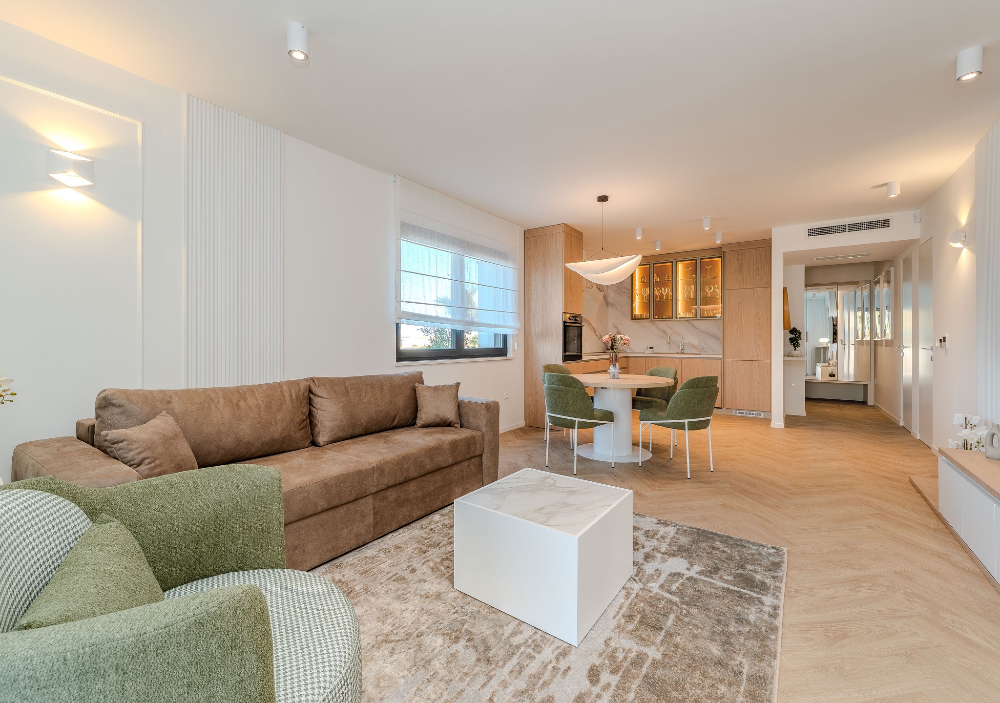 Izazov d.o.o. s ponosom predstavlja završetak projekta luksuznog opremanja Apartmana Vir. Svaki detalj interijera kreiran je s posebnom pažnjom, od ideje do realizacije, pružajući prostorima neponovljivu eleganciju i udobnost.