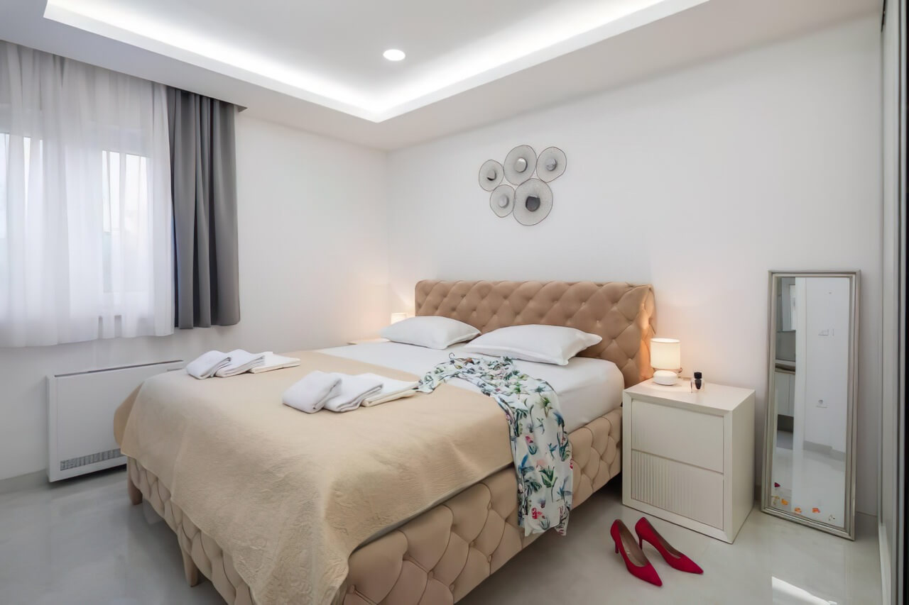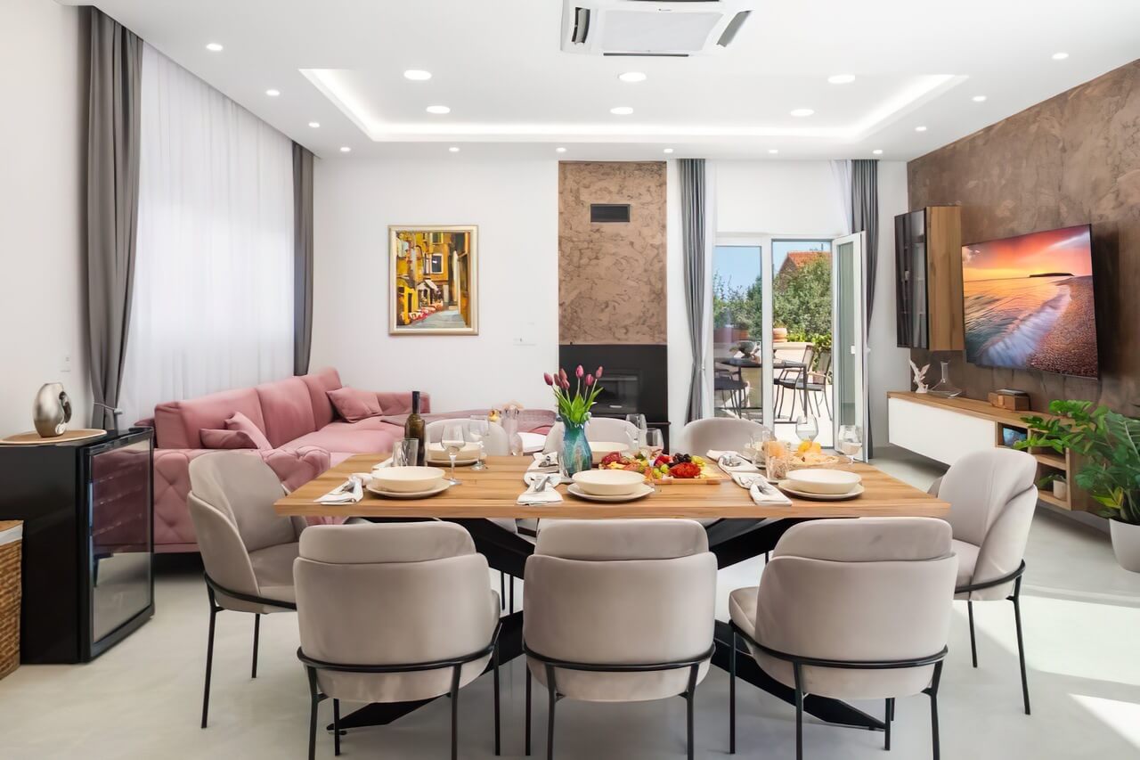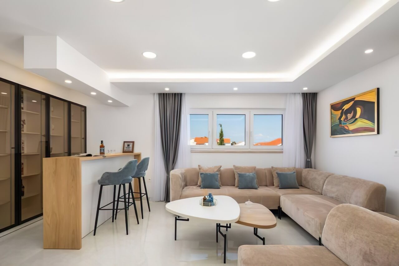 Izazov d.o.o. je opremio luksuznu Villa Divina Fortuna u Vodicama, Hrvatska, tokom 2024. godine. Proizveli smo sav nameštaj po meri za dnevne sobe, spavaće sobe, kuhinje, trpezarije i terase, koristeći vrhunske materijale poput MDF-a, egger iverice i visokokvalitetnog tekstila.