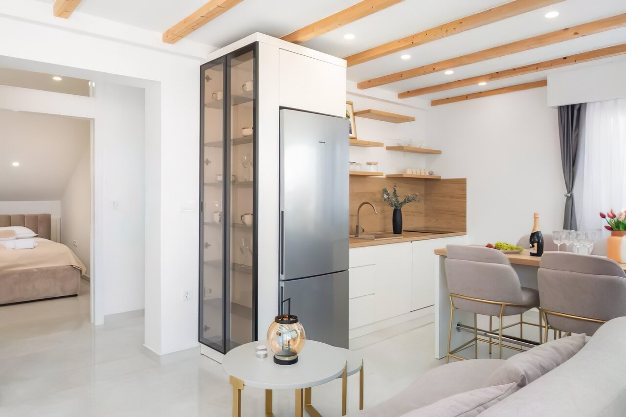 Svaki komad nameštaja pažljivo je dizajniran kako bi doprineo eleganciji i udobnosti prostora, stvarajući jedinstven enterijer koji odiše stilom i funkcionalnošću.